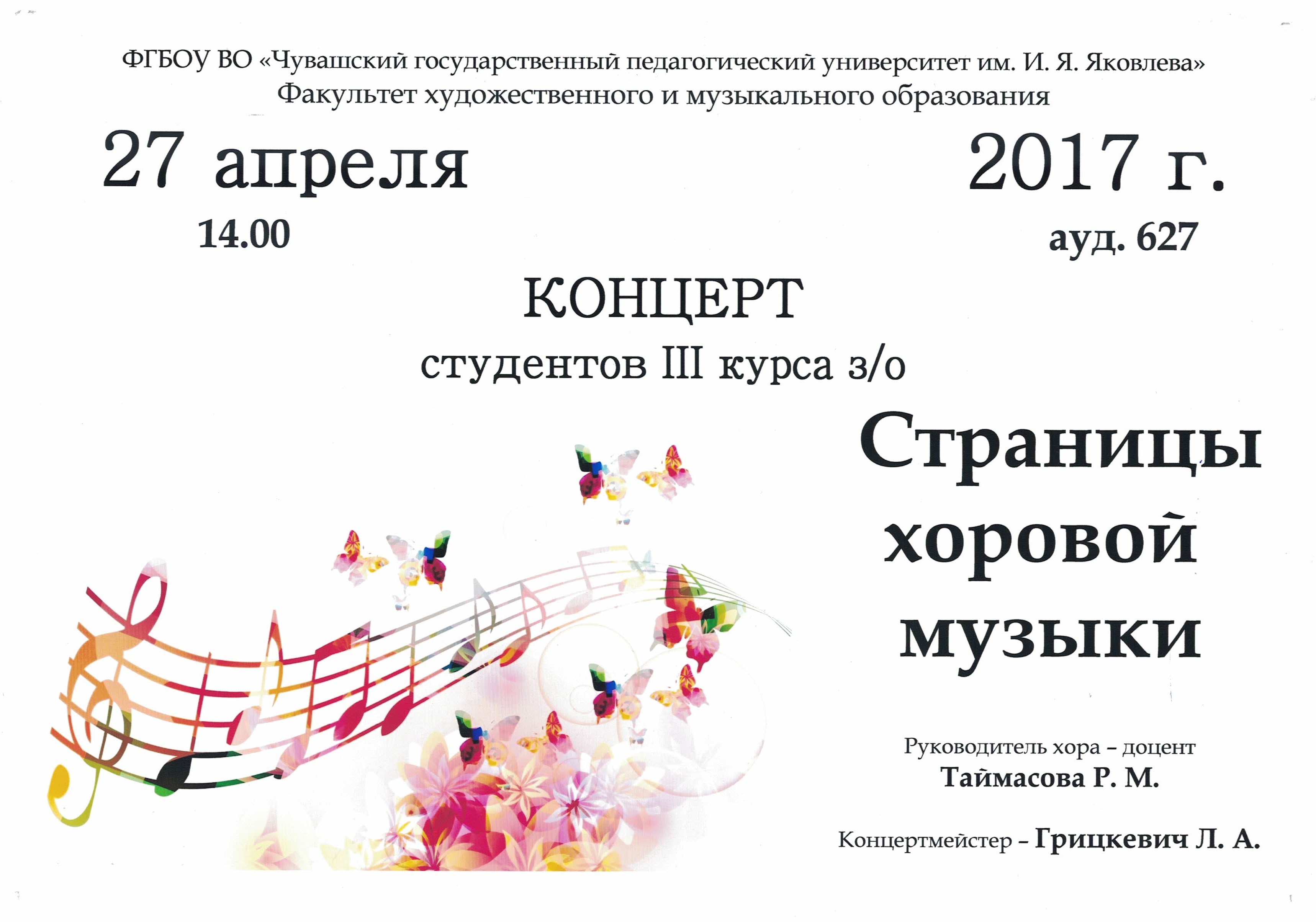 27 апреля приглашаем на концерт студентов заочного отделения "Страницы хоровой музыки"