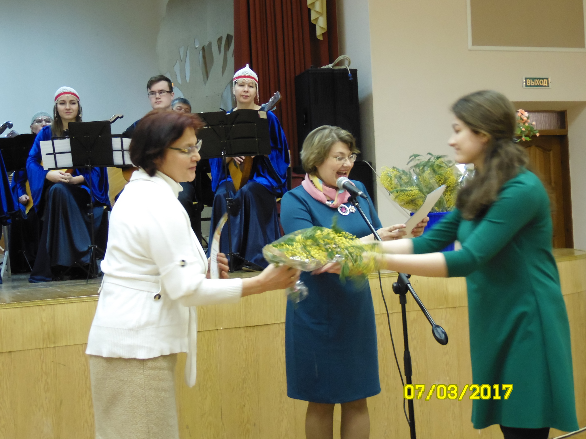 Торжественный концерт начался с поздравления исполняющего обязанности ректора ЧГПУ им. И. Я. Яковлева В.Н. Иванова с Международным женским днем 8 Марта. И. о. декана С. В. Ильина вручила благодарности самым замечательным и прекрасным педагогам, концермейстерам и сотрудницам нашего факультета, которые на протяжении многих лет трудятся на факультете.