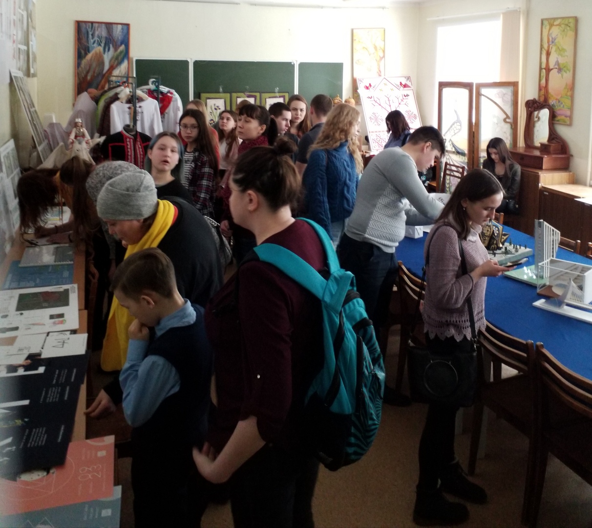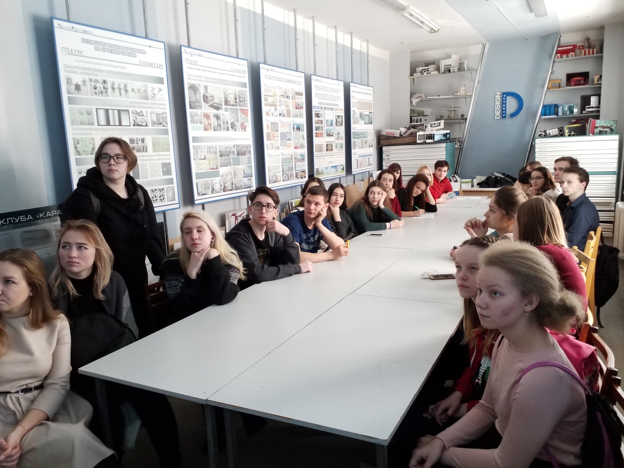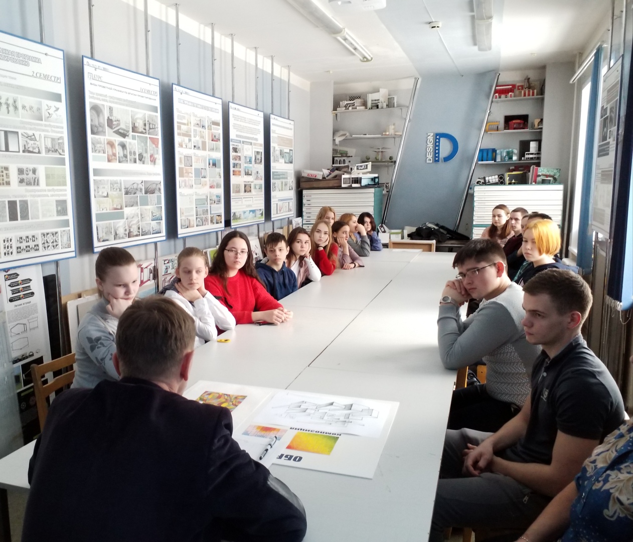 Неформальное общение, обмен контактами, экскурсия по учебным аудиториям и мастерским, просмотр рекламных роликов и мультфильмов, созданных студентами-дизайнерами, осмотр выставки учебных и выпускных квалификационных работ - все это приготовили преподаватели и работники кафедры специально для будущих абитуриентов.
