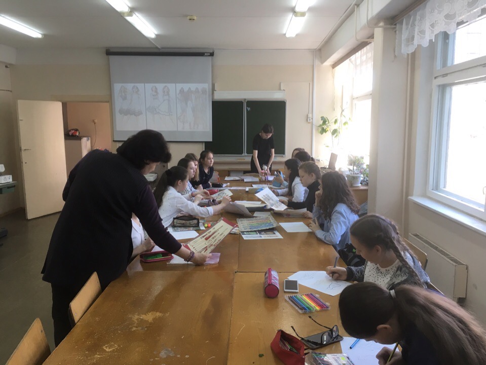 Данные уроки на такие темы, как «Основы композиции в дизайне одежды», «Формообразование костюма и использование способов моделирования и макетирования в дизайне одежды», «Народный костюм как особый объект творческой деятельности дизайнеров», «Пропорции человеческой фигуры. Художественное проектирование одежды», решали комплекс задач, поставленных учителем и студентами путем сочетаемости разнообразных методов, средств, технологий и использования различных видов работ. В ходе уроков формирования новых знаний в таких формах проявления, как, урок-исследование, мультимедиа-урок, проблемный урок применялись как объяснительно-иллюстративные, так и частично поисковые, исследовательские методы обучения, дискуссия, разнообразные источники знаний, кинофрагменты, интернет-технологии и другие технические средства обучения и контроля. При создании творческого проекта одну проблему или задачу учащиеся решают возможностями разных предметов. Следовательно, интеграция уроков технологии и изобразительного искусства, истории искусства, МХК позволяет средствами информационных технологий соединять современные средства обучения с искусством. Главный результат интеграции – это формирование у растущего поколения единства ценностей, изучаемых в разных предметах.