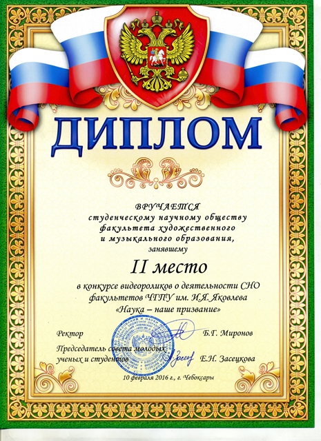 Поздравляем Студенческое Научное Общество факультета художественного и музыкального образования! Занявшее 2 место в конкурсе видеороликов о деятельности СНО факультетов ЧГПУ им. И.Я. Яковлева «Наука - наше призвание!»