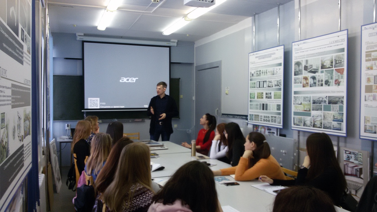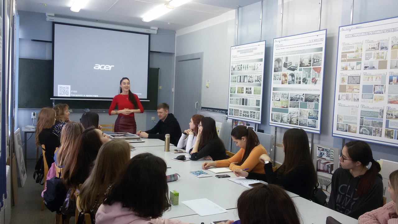 Сергей владеет студией дизайна «Gallant Hous», под его руководством создаются интерьерные проекты для жилой и общественной среды. Ирина является известным и востребованным дизайнером жилых интерьеров. Они рассказали студентам с чего начинали свою трудовую деятельность, как искали работу после окончания вуза, как позиционировали себя среди дизайнеров-профессионалов. Особый интерес у присутствующих вызвал портфолио проектов Сергея и Ирины. Студенты задавали интересующие вопросы, нашли в соцсетях студию Сергея и профиль Ирины, подписались на них. Таким образом, завязалось неформальное знакомство, которое, мы надеемся, продолжится в совместных проектах! Встречу организовала доцент Кузина
